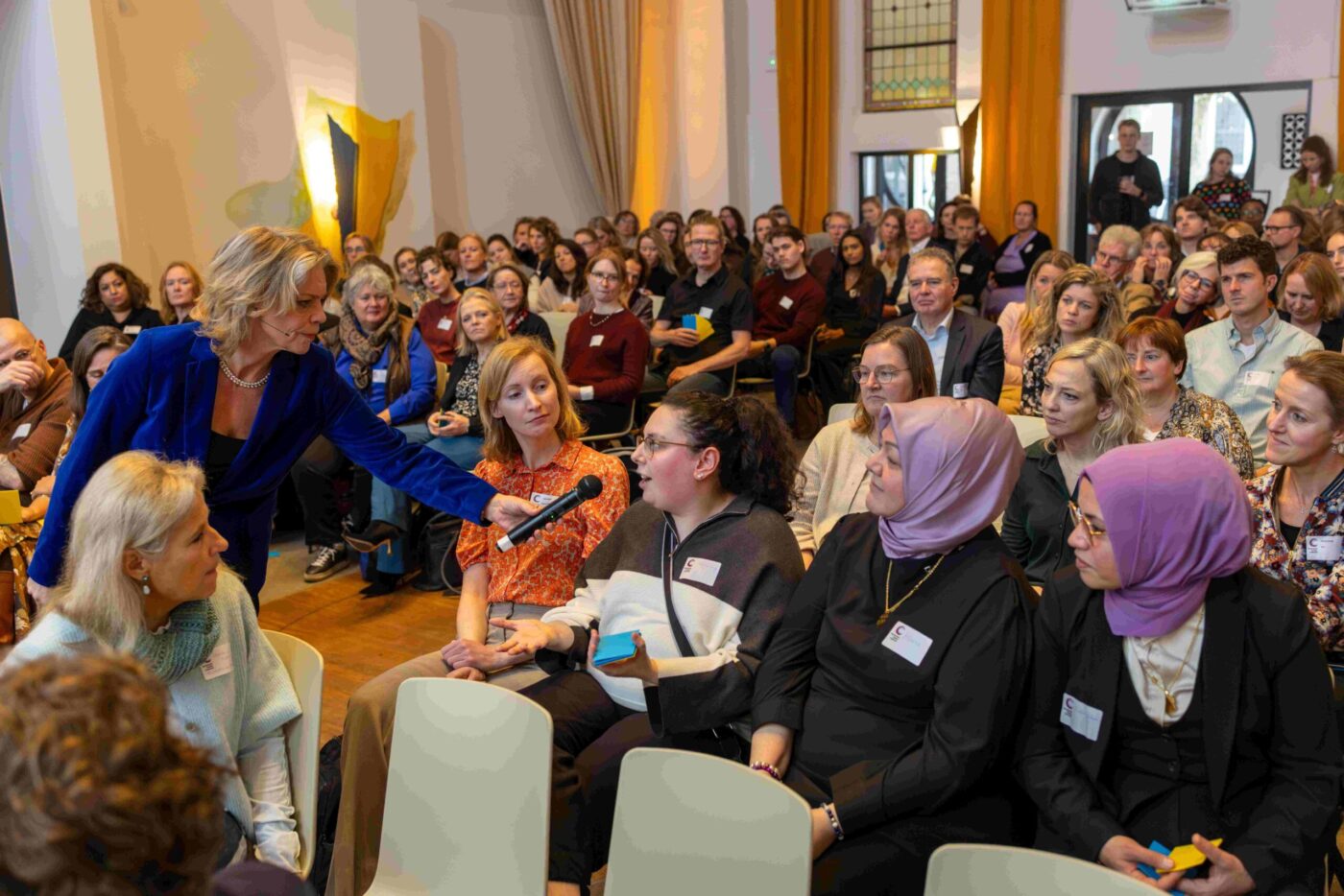 Keynote speaker Ayca Szapora maakte invoelbaar waarom ongelijkheid zo weerbarstig kan zijn. Ons brein werkt snel, automatisch en grotendeels onbewust. Dat helpt ons dagelijks functioneren, maar zorgt er ook voor dat we blijven terugvallen op bekende beelden, aannames en routines. Ongelijkheid ontstaat zo niet alleen door systemen, maar ook in kleine momenten van kijken, kiezen en handelen.
